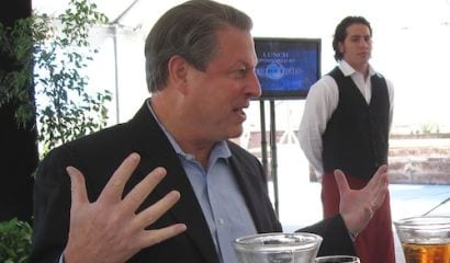 Two years ago, roughly, starts a cable TV channel to advance progressive causes and green energy. The channel, “Current” is a total and utter commercial flop. Just a complete zero. It has some great people, like my pal, Eliot Spitzer, but it loses money fast.