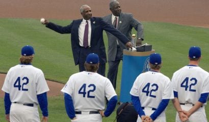 To me, the most interesting moment of 42 comes when Eddie Stanky (Jesse Luken), the Dodgers’ scrappy second baseman, confronts Ben Chapman on the field about his racist heckling of Robinson, threatening to shut his mouth for him if he doesn’t shut it. Back in the dugout Jackie, with some apparent reluctance, says thanks. “For what?” Stanky replies. “You’re on my team. What am I supposed to do?” Of course, it helps to know that not just racism but needling and insulting any and all opposing players on the basis of their appearance or their ancestry or anything else that might get under their skin had been a normal part of the rackety and low-class game of baseball from the start, but it seems to me that a more interesting, less familiar way to read the Jackie Robinson story is as one of the gentrification of our national game with a new and classier approach to sportsmanship.