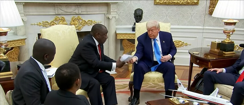 And now, just after Ramaphosa dropped a Zelensky-esque “Trump must listen” speech in response to a question about accusations of anti-white genocide, Trump made him sit through a four-and-a-half-minute video of South African politicians stoking murderous racism against the Afrikaners.