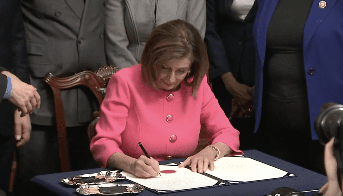 Speaking of quid pro quos, Nancy Pelosi, with trays containing 32 pens within reach, used many, many writing instruments to sign her name to the impeachment bill. Each stylus now acts as a trinket, like the junk one might purchase at a Broadway gift shop (except much more expensive) to memorialize seeing Hello, Dolly! or Jersey Boys. Pelosi gave the pens (at least Princess Leia waited for the Death Star’s destruction before bestowing those medals) to fellow Democrats, who surely give them to donors who gave to Democrats, a pen-laundering of sorts necessitated by Pelosi wishing not to appear even more uncouth by directly give the ball-point souvenirs to the party’s funding fathers.