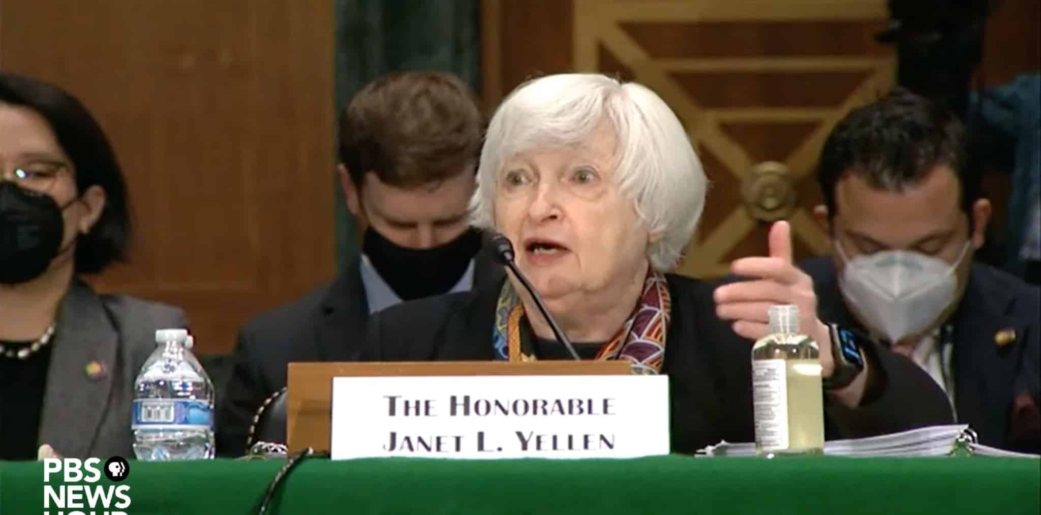 Janet Yellen before the Senate Banking Committee on May 10 (PBS/YouTube)