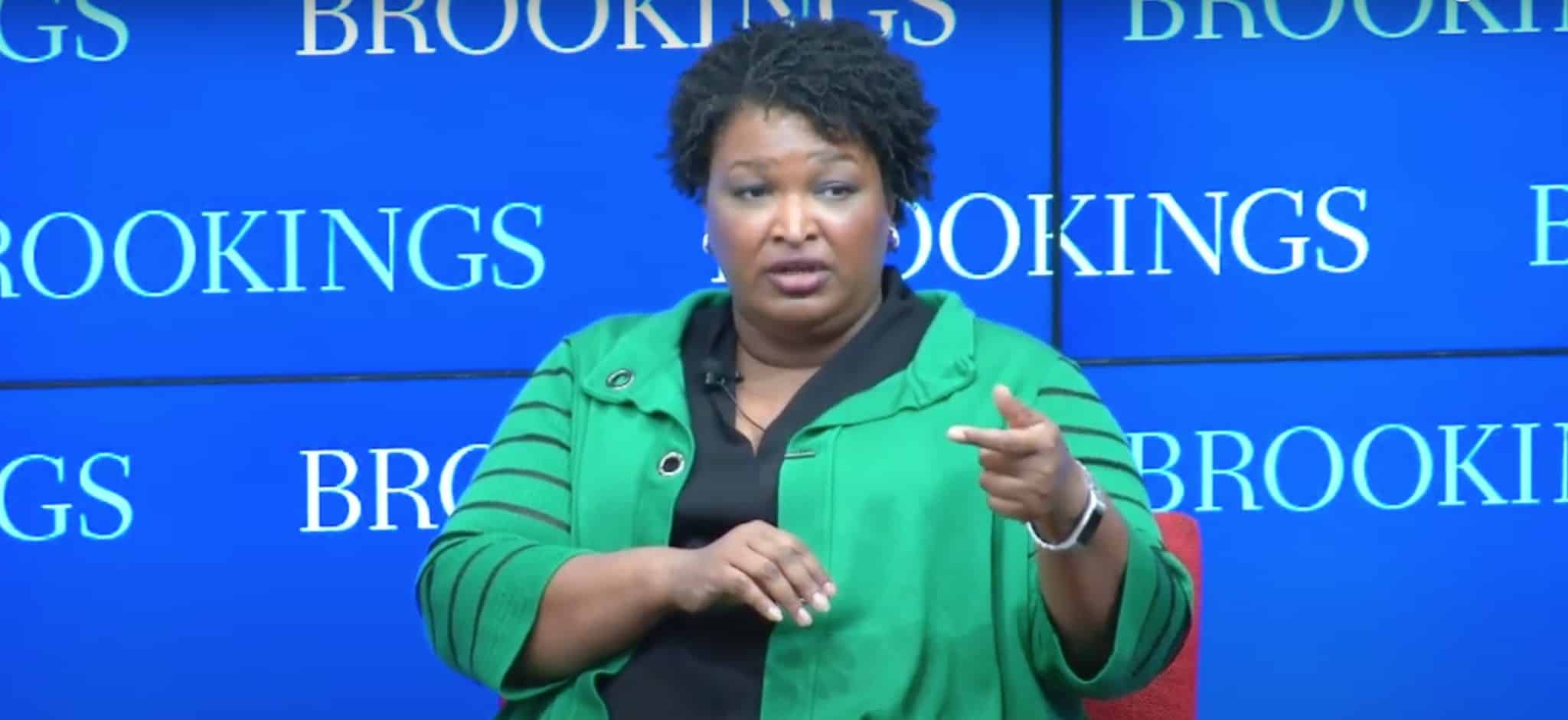 Stacey Abrams discusses voter "suppression" in an appearance at the Brookings Institution in 2019 (The Brookings Institution/YouTube)