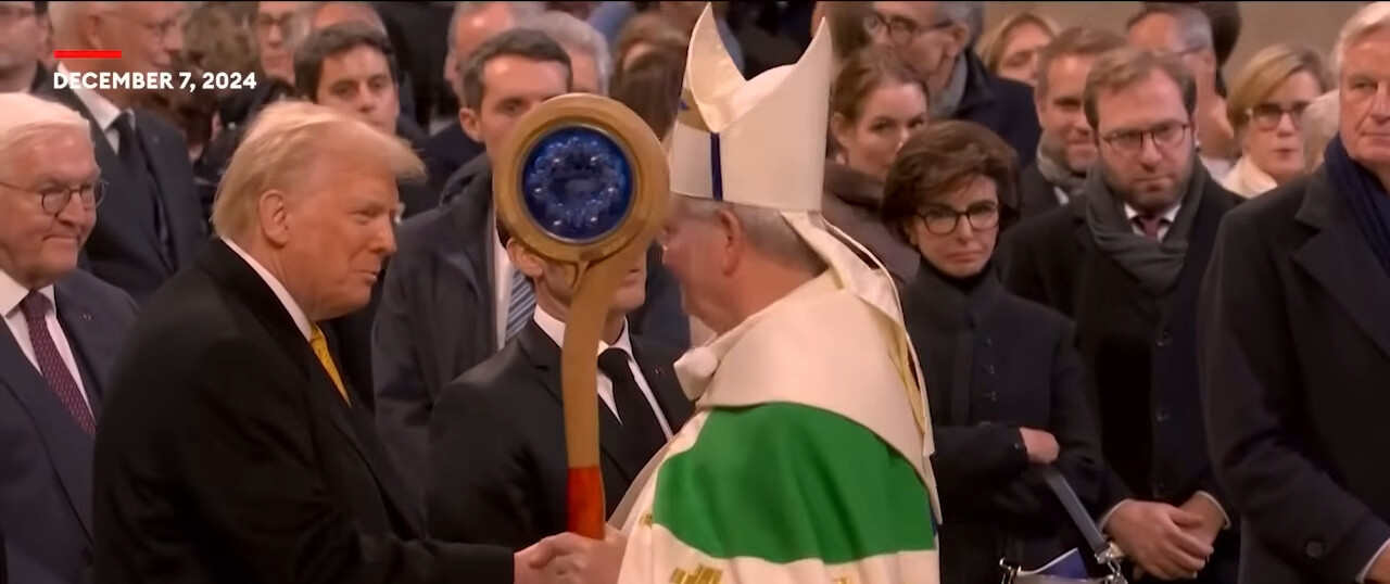 But a televised interaction that matched other unique and important “moments” in recent history occurred when the religious portion of the historical event ended. In the presence of more than 1,500 world leaders, distinguished guests, and anointed workers – and millions of viewers worldwide – the Archbishop of Paris, Laurent Ulrich, rushed to the front row of the congregation. A handshake with his own president, Emmanuel Macron, was perfunctory. But the Archbishop’s smiling, earnest handshake with Donald Trump was notable. The embrace of Timothy Cardinal Dolan would be expected; two New Yorkers greeted each other. But the world noticed the symbolism behind Trump’s reception at Notre Dame — virtually secular and spiritual consecrations.