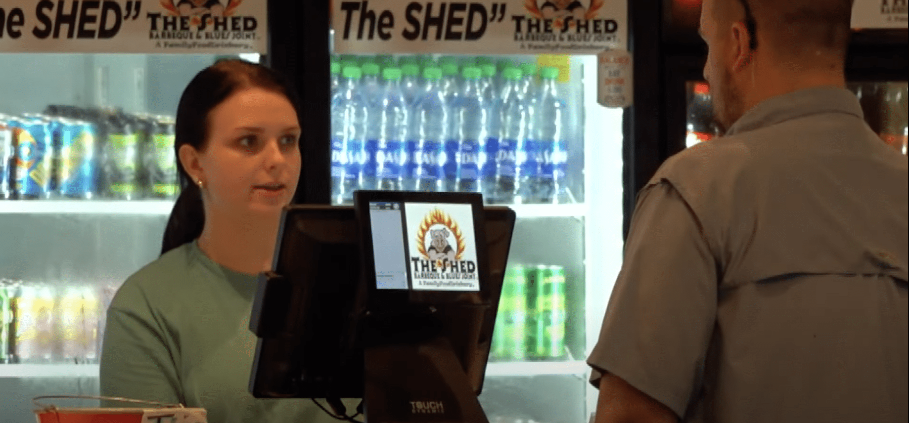 Allison Rice working at barbecue restaurant called The Shed, Baton Rouge, Louisiana (WWLTV/YouTube)