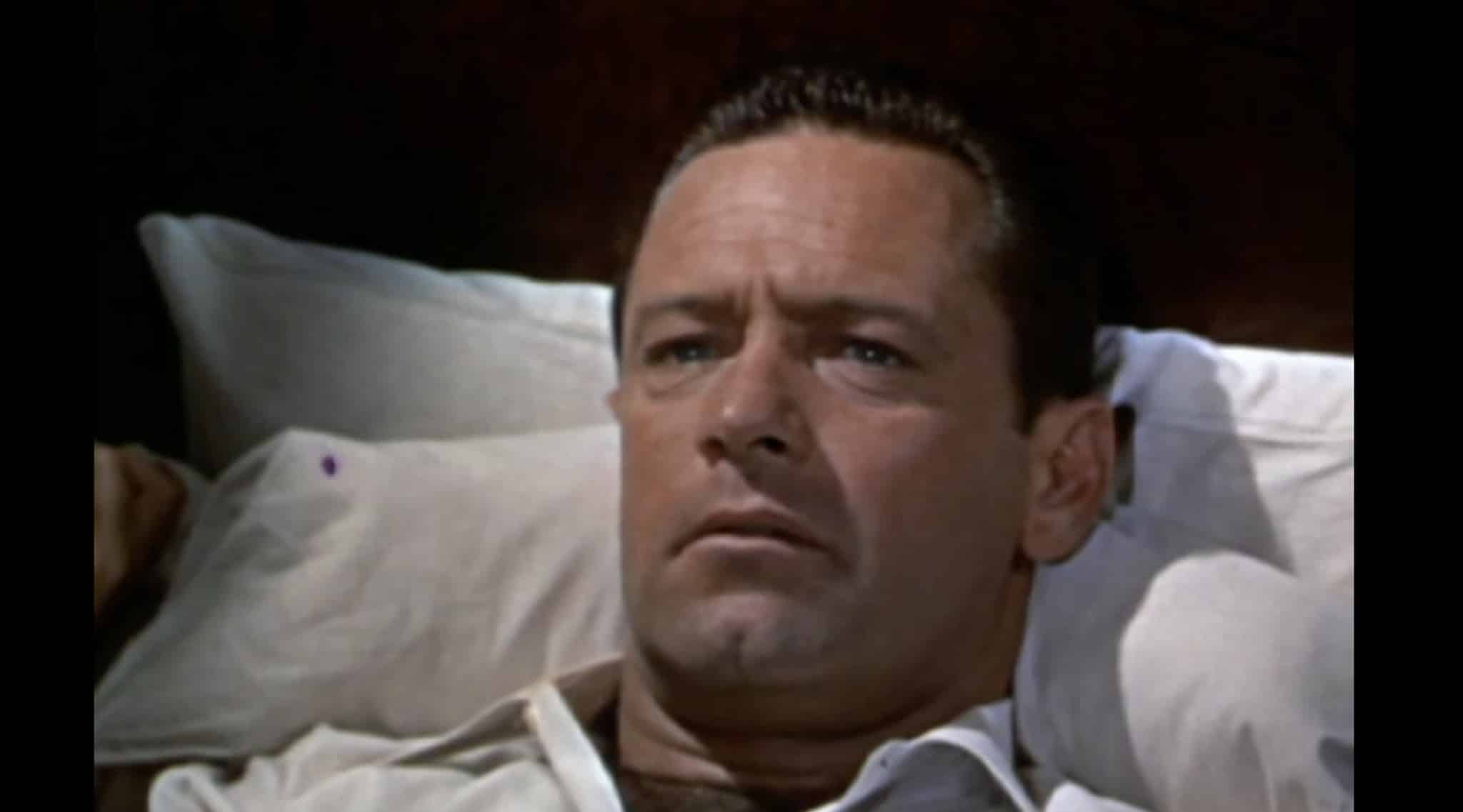 Holden’s character previously fought in World War II, and throughout the movie he wonders why he was called on to fight again in another terrible war on the other side of the globe. The reason, as we learn, is because Brubaker is a good, courageous pilot who does what is necessary to carry out his assigned missions. And on this mission, he and the other pilots fly low in the face of heavy enemy anti-aircraft flak to destroy the bridges — which they do. But Commander Lee’s plans call for a secondary attack on other targets and Brubaker’s plane is hit during that attack. He is forced to crash-land near an irrigation ditch in North Korea.