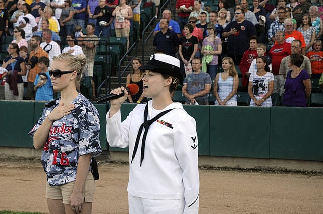 Before a championship girls softball game in Fresno, it was announced that there would be no playing of the National Anthem. So the solid Americanos in the stands stood up and sang it themselves. Perhaps not exactly on key, but who cares?