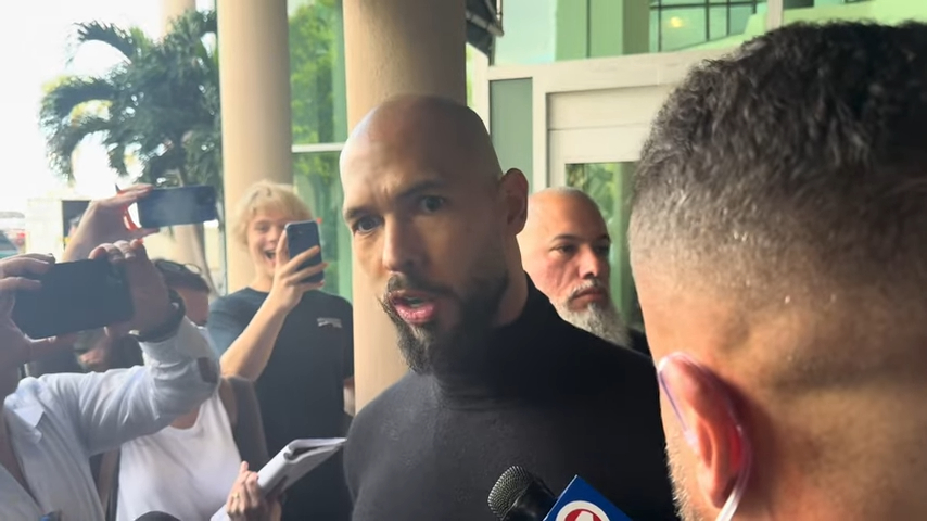 Andrew Tate interviewed upon landing in Fort Lauderdale, Fla. from Romania on Feb. 27, 2025 (NBC 6 South Florida/YouTube)