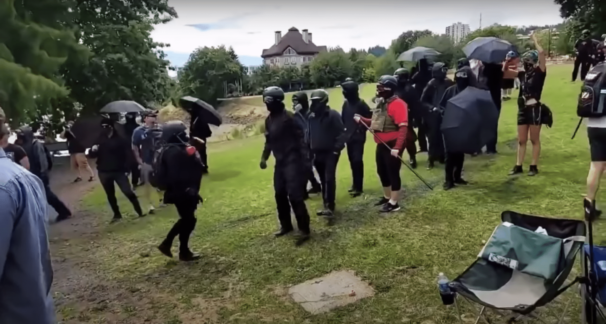 Antifa members donned in all black clothing, masks, and riot gear assaulted the gathering, reportedly throwing flash bombs and spraying mace at attendees. The disruptors could be heard yelling, “Where is your God now?” as they harassed the crowd.
