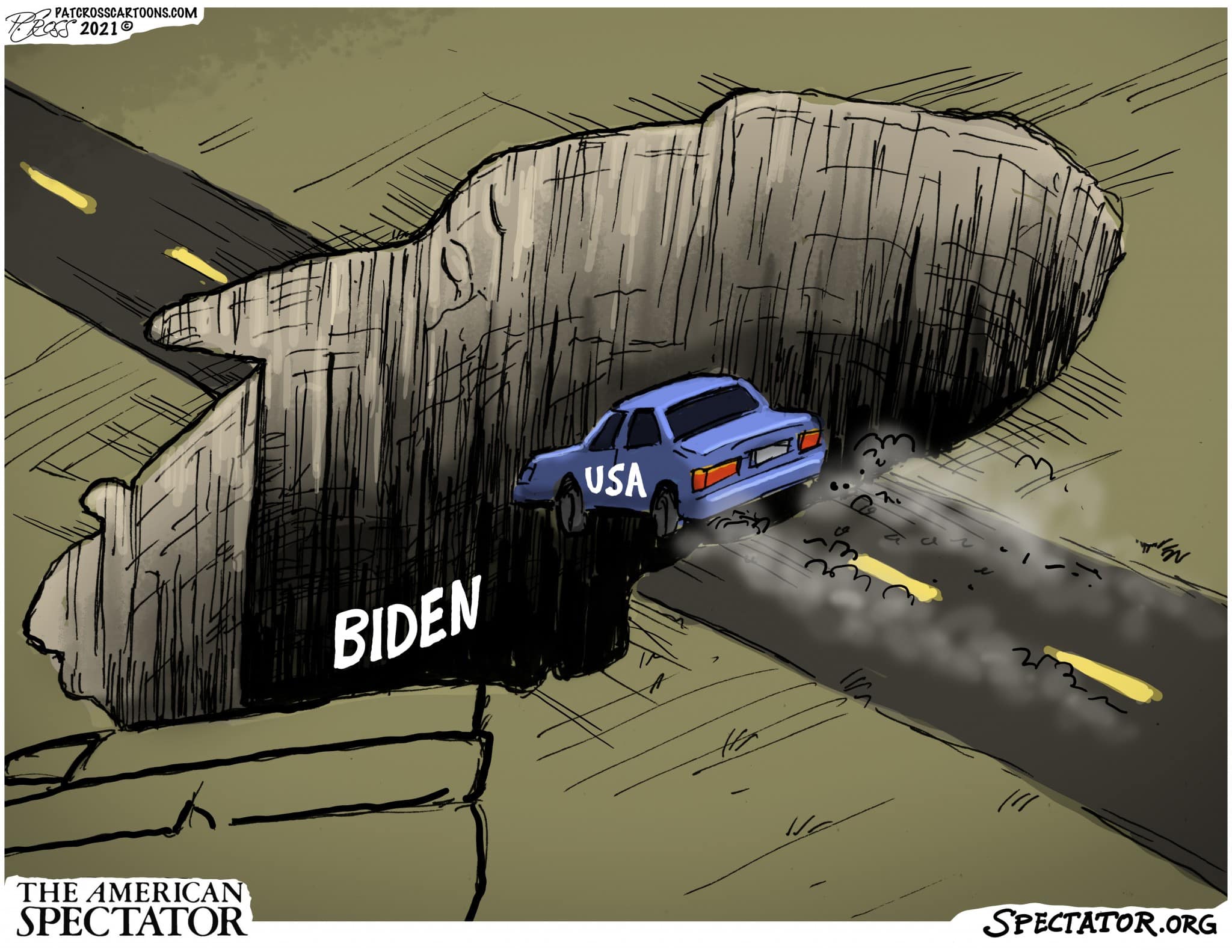 “Biden Pit,” editorial cartoon by Patrick Cross for The American Spectator, August 23, 2021.