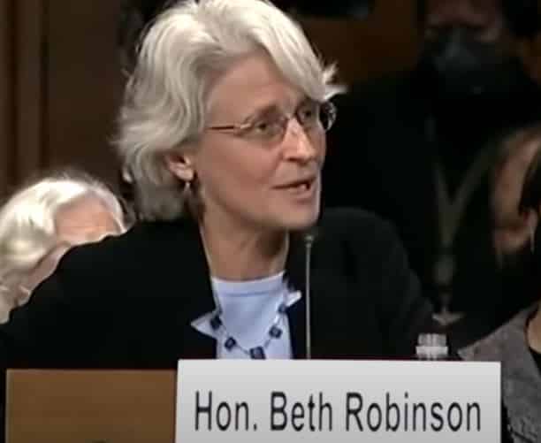 Introducing her at the hearing, Sen. Bernie Sanders said, “Justice Robinson is undeniably one of the most notable champions of equal rights and equal justice, and, in particular, she is one of our nation’s most important pioneers in advancing LGBTQ rights. In the landmark case of Baker v. Vermont, then Attorney Robinson secured a ruling in favor of marriage equality in 2009.”