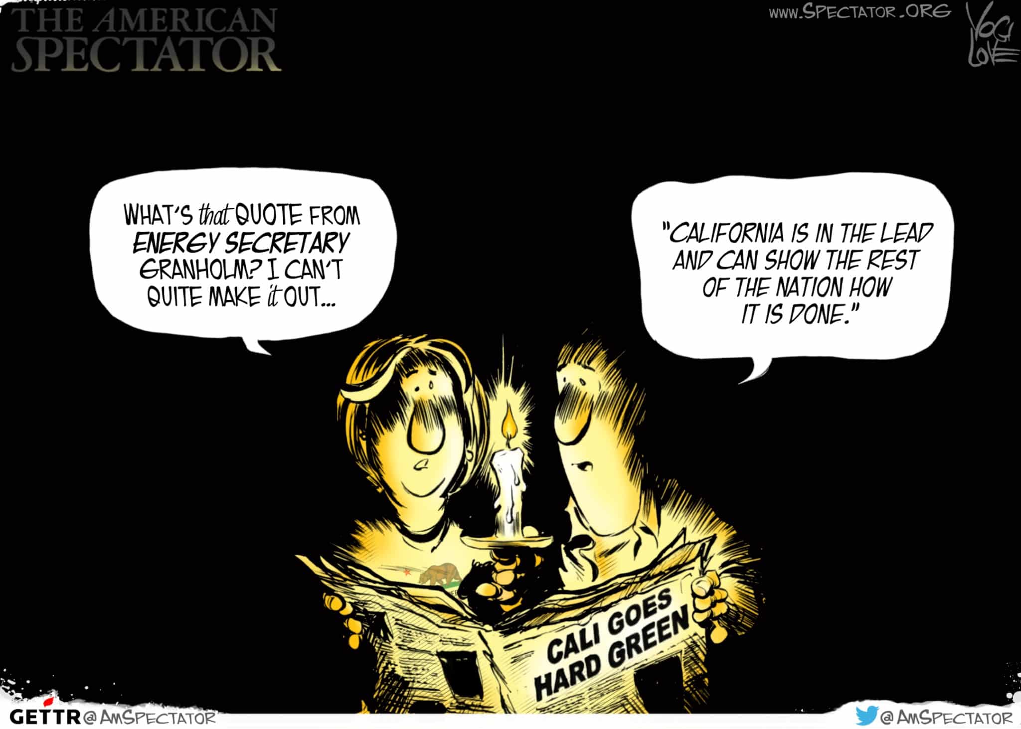 “California Goes Hard Green,” editorial cartoon by Yogi Love for The American Spectator, Sept. 14, 2022.