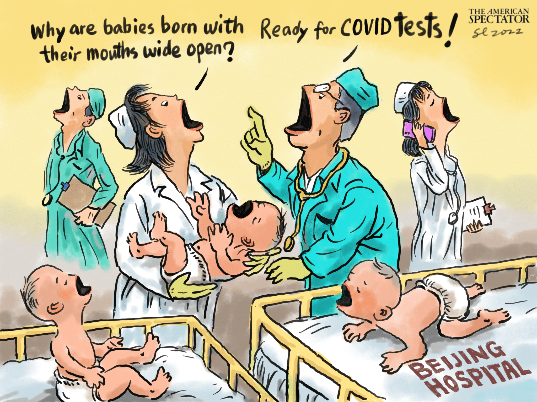 “China’s Permanent COVID State,” editorial cartoon by Shaomin Li for The American Spectator, Oct. 14, 2022.