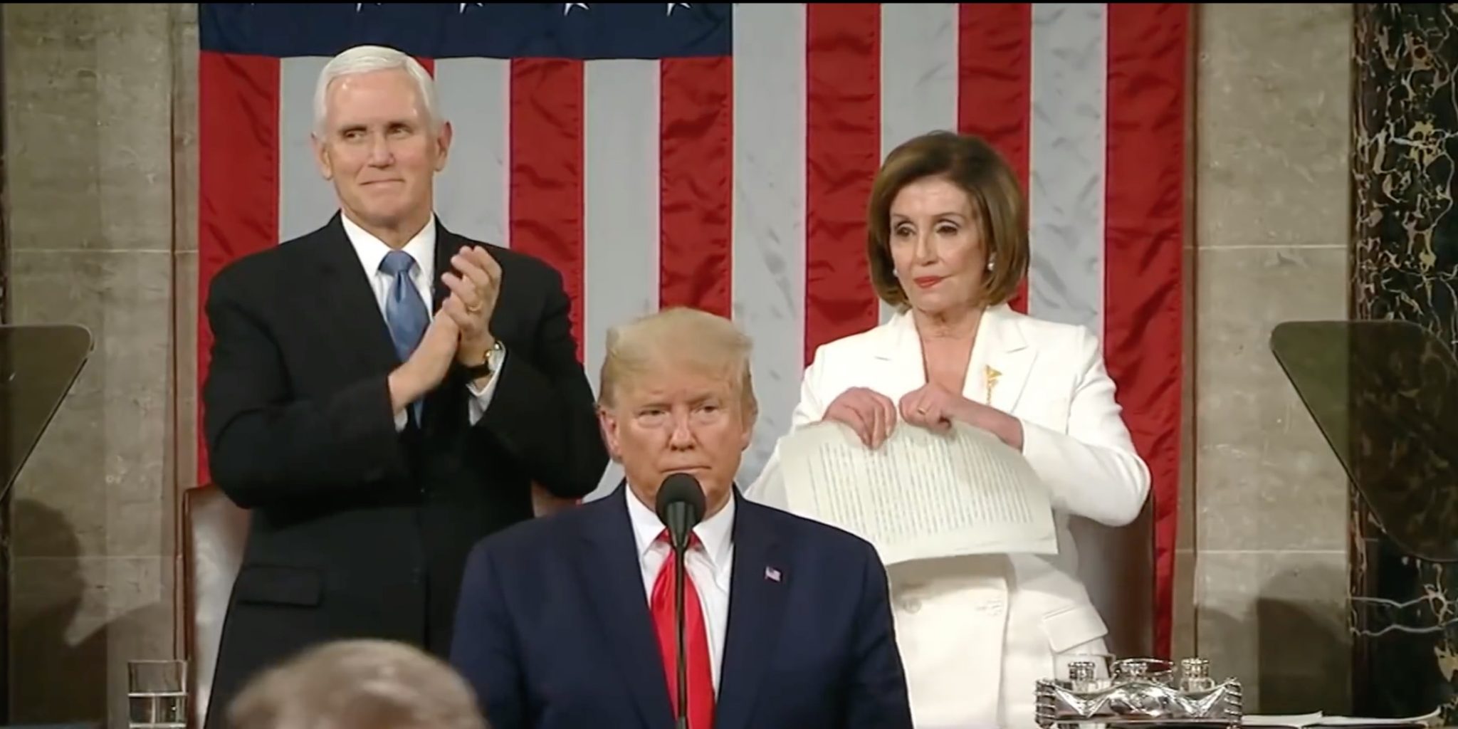 Especially significantly, as Pelosi tore up that wonderful speech that tortured her for 90 minutes, she also permanently put the lie to the canard that Donald Trump is not “presidential enough.” What she did was caught on video and never can be escaped: the smallness and pettiness of a very hate-filled, very tired, very defeated San Francisco matron who cannot stand being beaten by someone she deems below her but who actually is many times smarter than she is, many times more likeable than she is — and who, for all his ridiculous nonsense sometimes, is many times more dignified and “presidential” than she ever was or ever can be. For all of America, it was a moment to see what happens when a fairly beaten politician is so consumed by hate that she can do no more than bristle, steam, and tear papers in a hissy fit. At least the speech’s white pages went with her outfit.