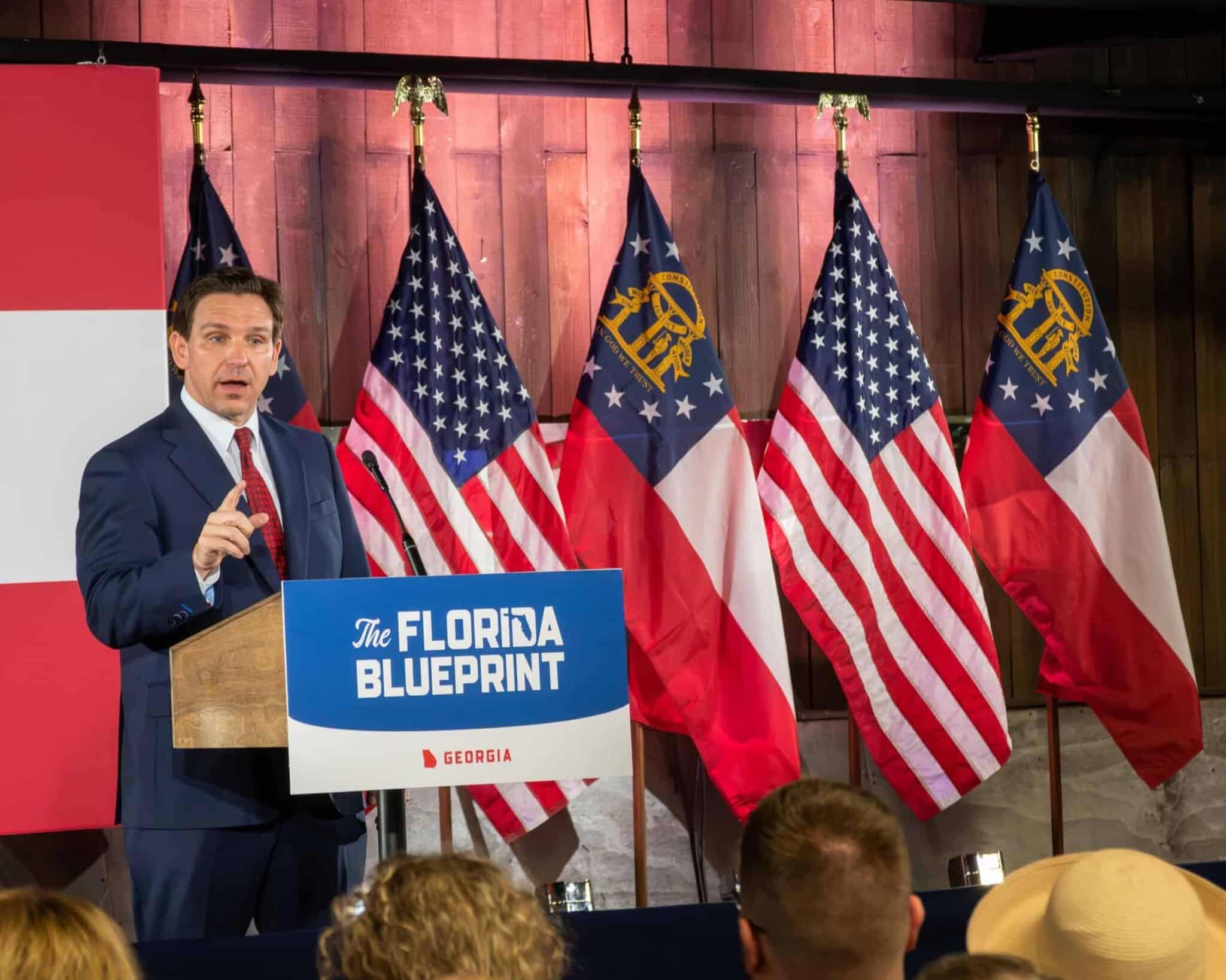 Florida Gov. Ron Desantis gives speech in Smyrna, Georgia on March 30, 2023 (William Hunton/Shutterstock)