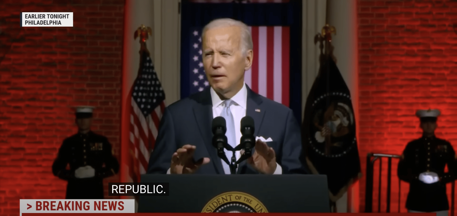 After declaring, “I’m an American President — not the President of red America or blue America, but of all America,” Biden nonetheless insisted that “MAGA Republicans” don’t quite make the cut. Unlike the late Mansfield, he has evidently discovered a way to divine the inner motives of this particular group of Americans, and he has concluded that they are so extremist that they constitute a threat to this country. Biden warned his audience that we are “in a battle for the soul of this nation” and that the enemy is a GOP largely dominated by these evil MAGA Republicans and their diabolical leader — former President Donald Trump. He said:
