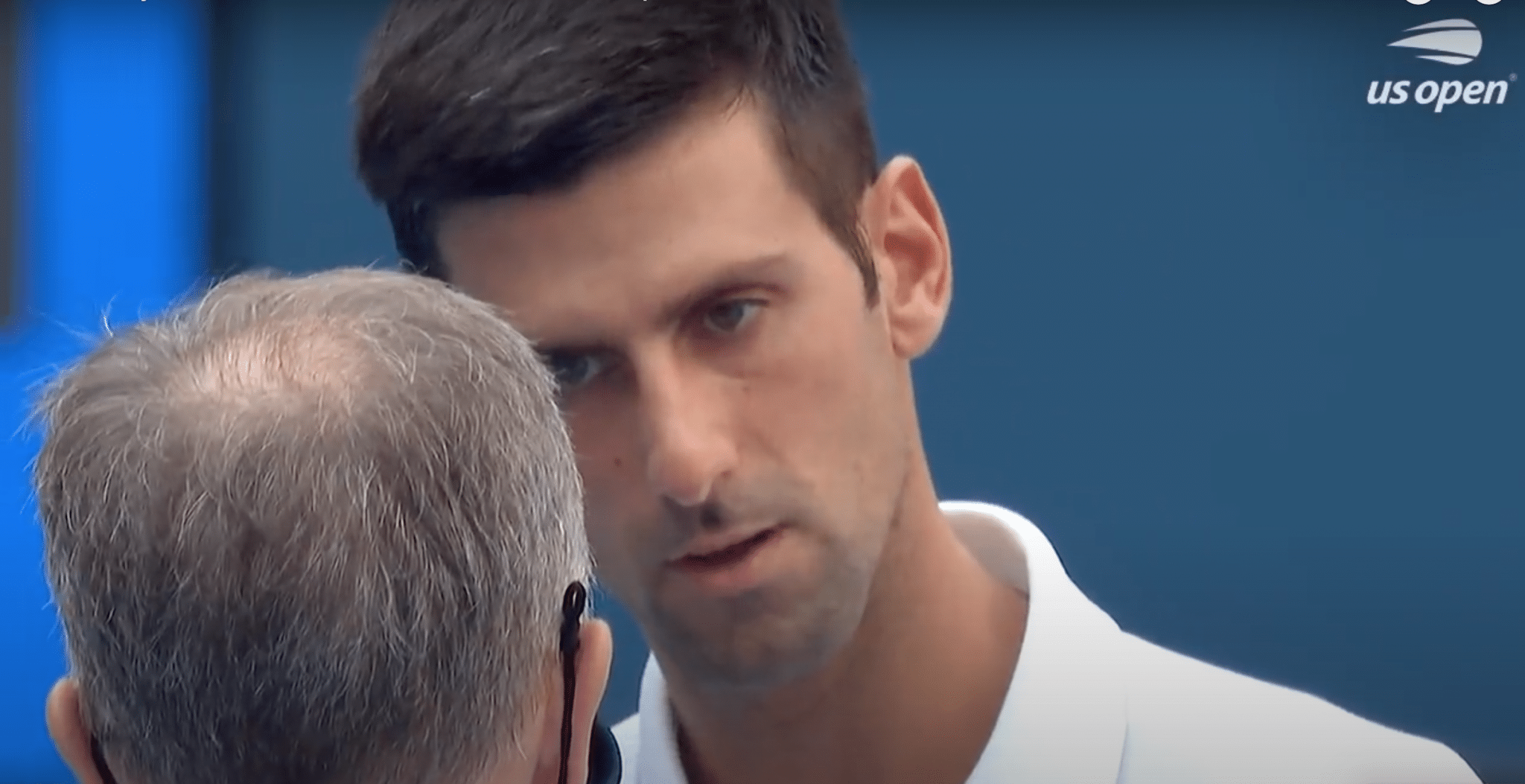 Novak Djokovic got broken in his third-round U.S. Open match. While changing sides at 6-5 for his opponent, he whacked a ball and hit a line judge in the neck, and she — it was a she — collapsed in pain.