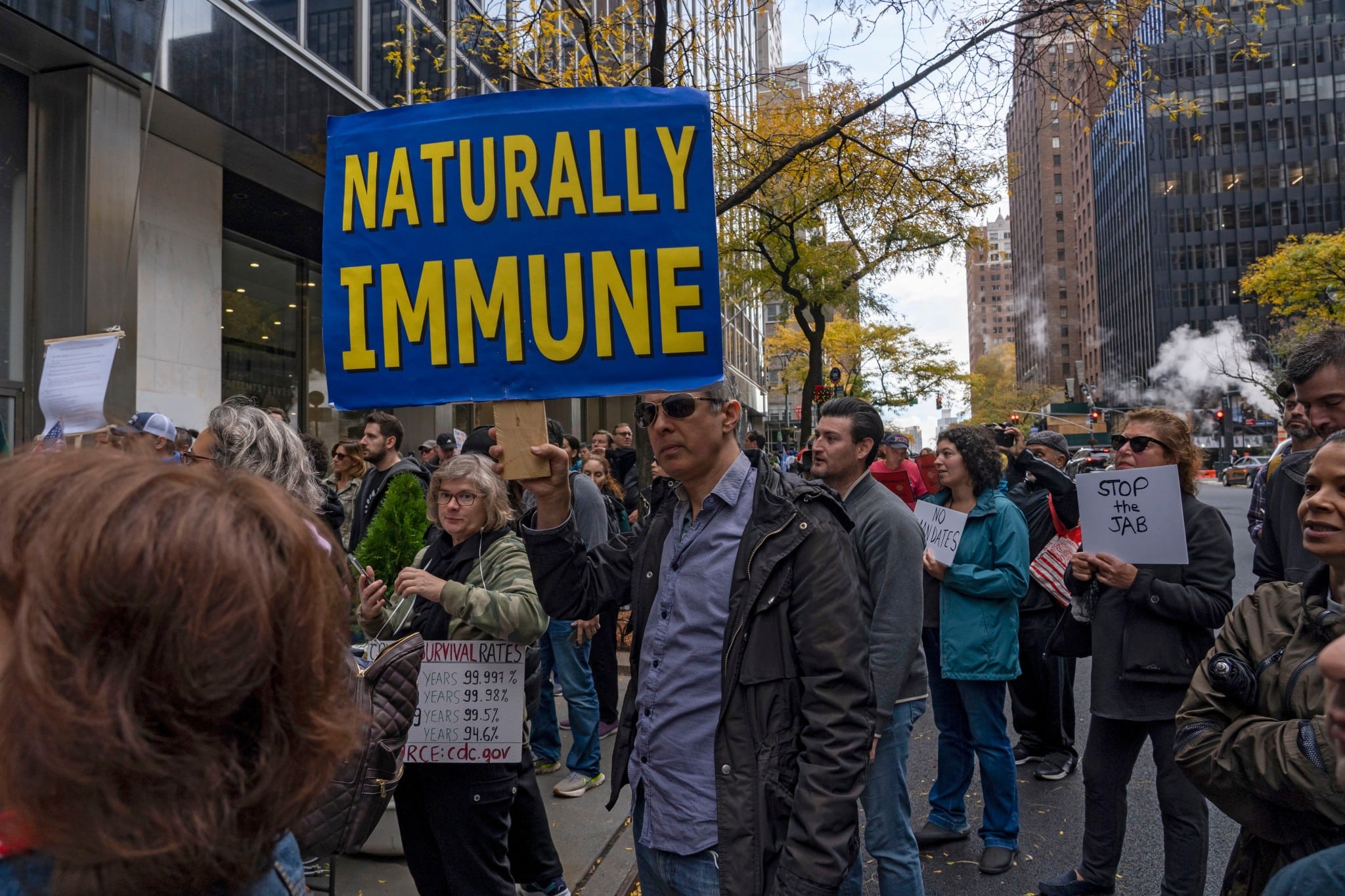 City employees and others protest in front of Pfizer world headquarters in New York last November 13 (Ron Adar/Shutterstock.com)