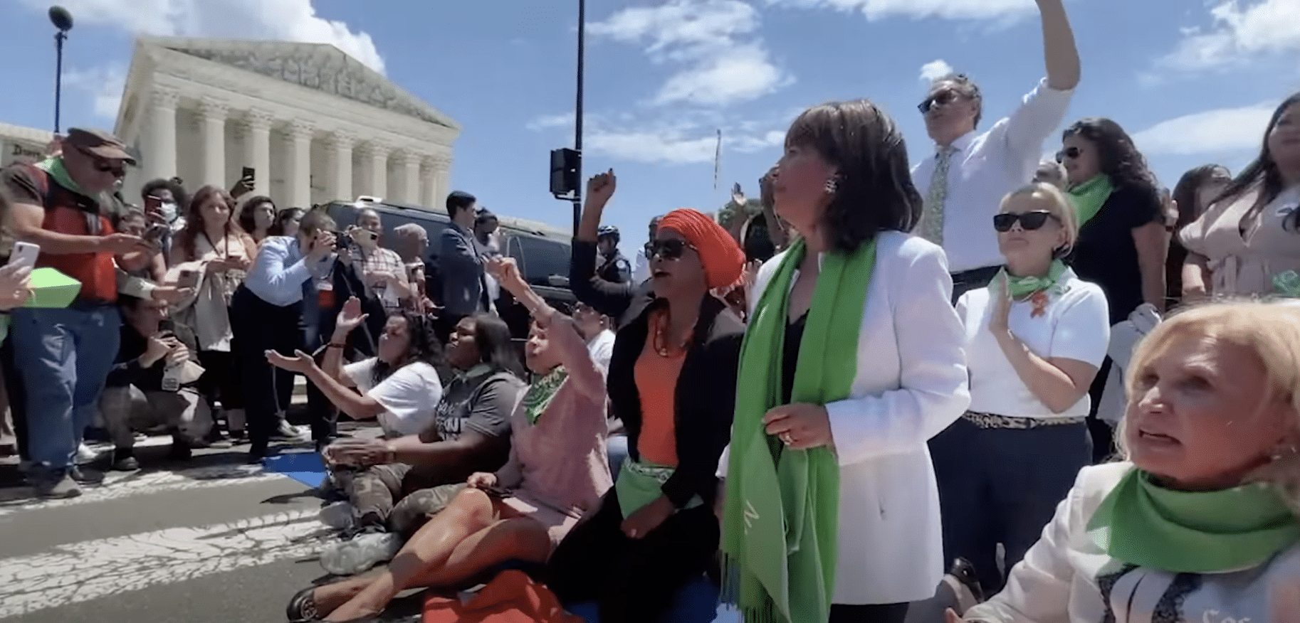 The Capitol Police arrested 17 U.S. representatives, including Ilhan Omar (Minn.), Alexandria Ocasio-Cortez (N.Y.), Ayanna Pressley (Mass.), Rashida Tlaib (Mich.), Jackie Speier (Calif.), Bonnie Watson Coleman (N.J.), Cori Bush (Mo.), Katherine Clark (Mass.), Alma Adams (N.C.), Veronica Escobar (Texas), and Carolyn Maloney (N.Y.), in an act of civil disobedience protesting the Dobbs decision outside of the Supreme Court on Tuesday.