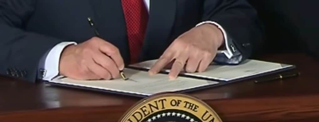 President Donald Trump signs the Tax Cuts and Jobs Act, 2017 (CBS New York/YouTube)