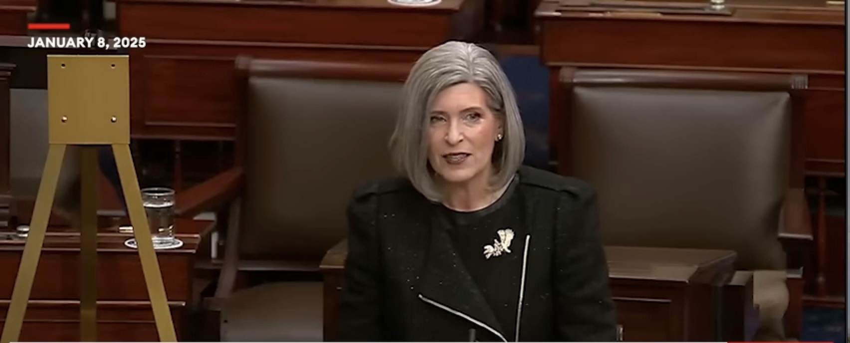 U.S. Senator Joni Ernst discussing the DOGE Caucus and Drain The Swamp Act on the U.S. Senate floor on Jan. 8, 2025 (Forbes Breaking News/Youtube)