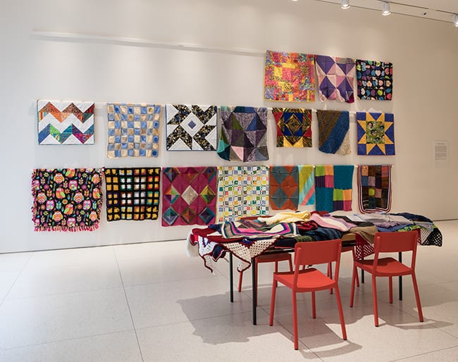 This participatory project, the museum states, “confronts issues around immigration and refugee resettlement through a tapestry of handmade blankets.” Each blanket, then, is a “physical manifestation of this celebration of new refugees and other immigrants.”
