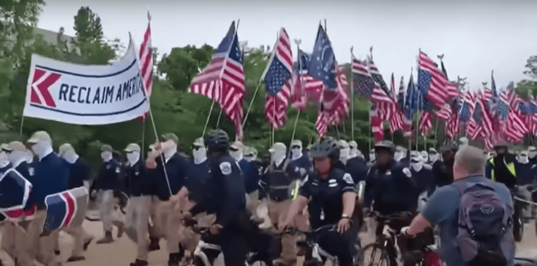 Let’s be honest here. Don’t you think it’s just a little bit convenient that Joe Biden is giving a commencement speech at Howard University, which is of course in Washington, and these guys show up with a massive police escort to tromp around Washington only a couple of days earlier, lending a news hook to Biden trotting out his “white supremacists are the real terror threat” line?