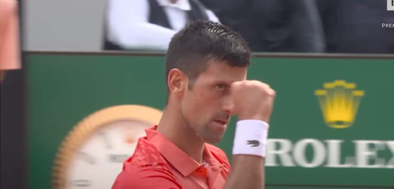 Novak Djokovic Sunday, mid-match, at the French Open (Roland-Garros/YouTube)