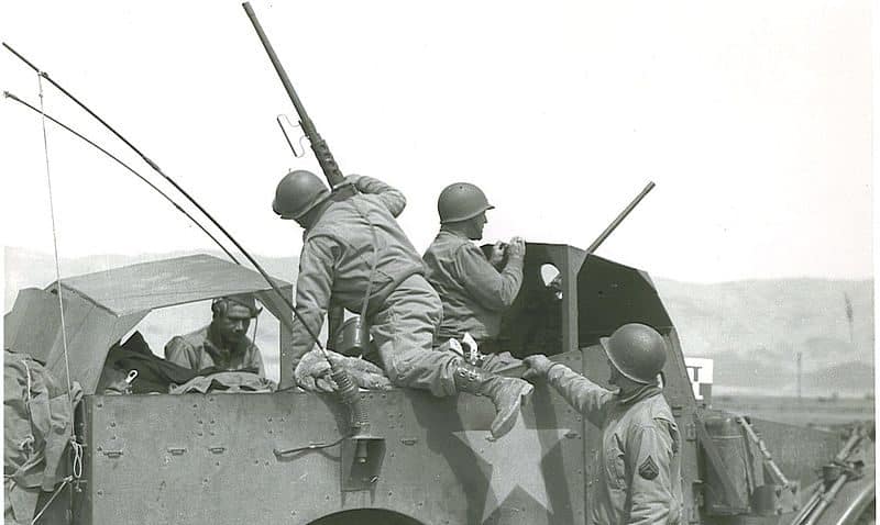 Gen. Patton’s modded scout car with troops inside (Wikimedia Commons)