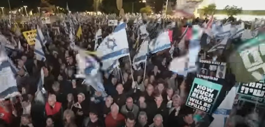 Israelis demonstrate for the release of hostages held by Hamas (DW News/Youtube)