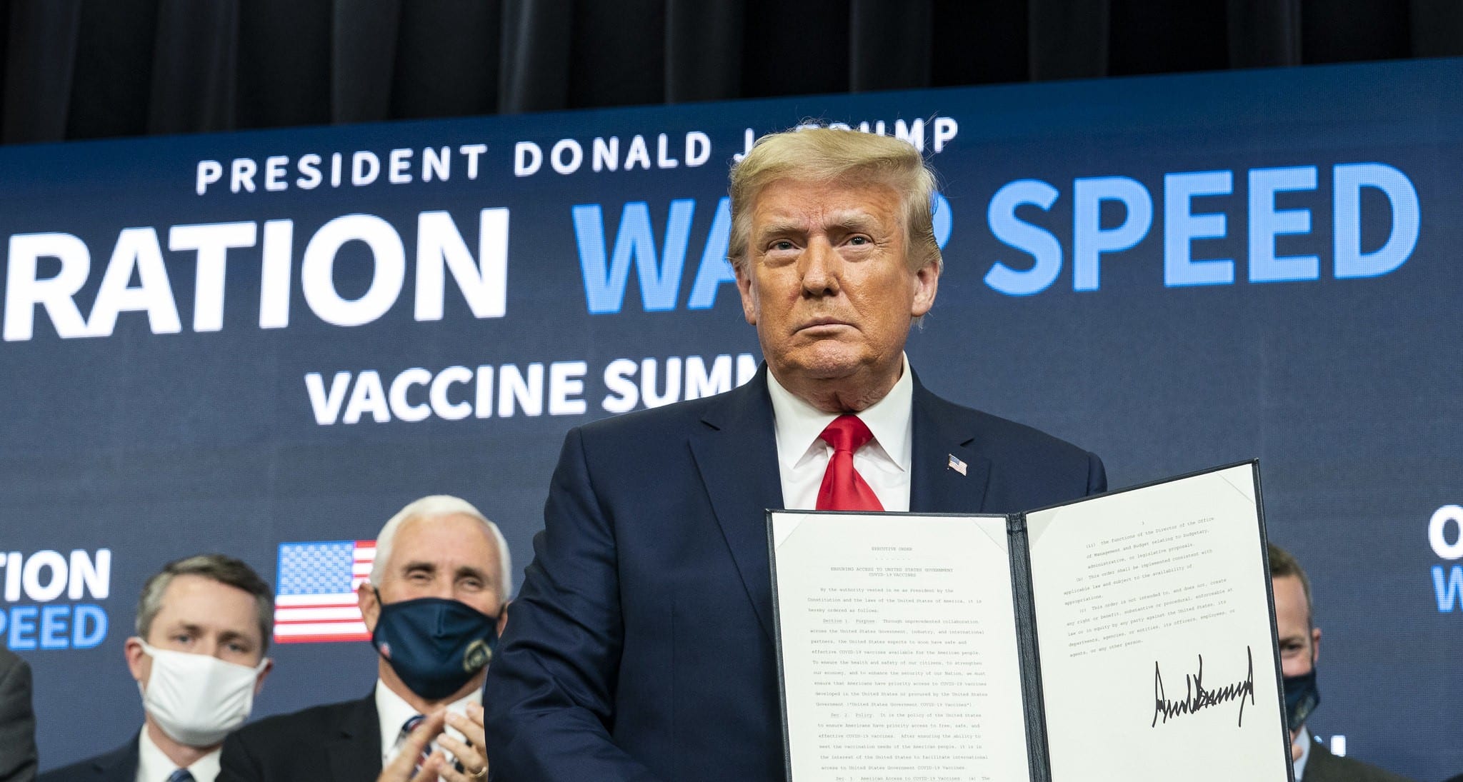 Donald Trump signs executive order on COVID-19 vaccine access at the White House, December 8, 2020 (Shealah Craighead/Official White House photo)
