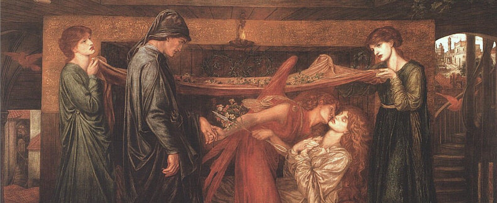 And now we turn to Dante, who says that when he was nearly nine years old, he met Beatrice for the first time, she “who was called Beatrice even by those who did not know her name,” because “Beatrice” means “she who brings a blessing.” So overcome was he by her beauty, that the animating soul within him spoke straightaway to the spirit of the eyes, in Latin, Apparuit beatitudo vestra: Your bliss has appeared. When I asked the students about that word beatitudo, they said it reminded them of Scripture, and they noted that it had to do with heavenly bliss, the ultimate blessing. I mentioned that the tense of the Latin verb was the perfect, to suggest something that has already happened. It is a bold move on Dante’s part, as if the whole of his future life as a human soul enthralled by love, and as a poet and philosopher and theologian, had been concentrated in this one moment, when he was but a boy with no clear understanding yet of any of these things.