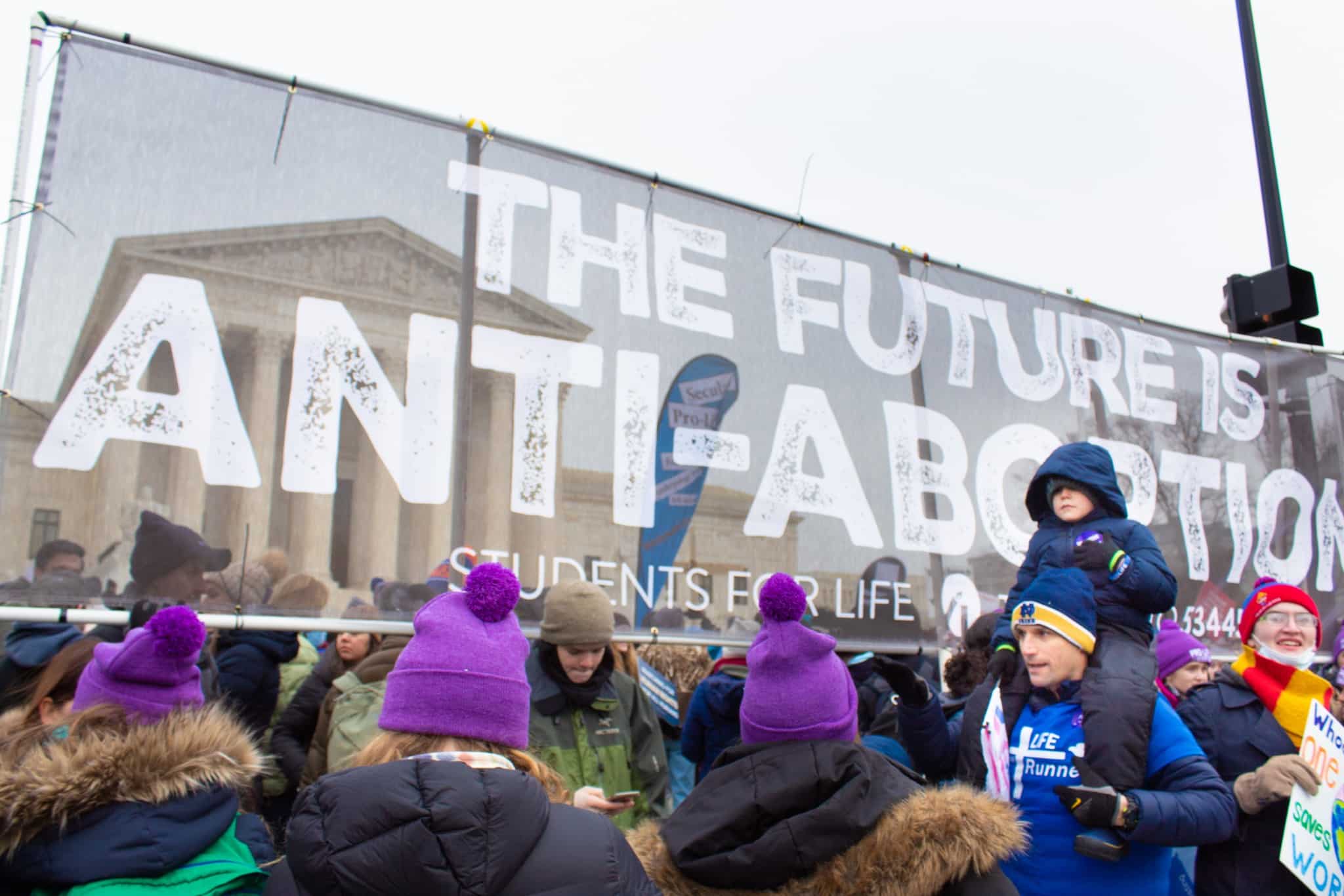 People carried signs that said, “I am the post-Roe generation,” “Women’s rights begin in the womb,” “The future is anti-abortion,” and “Love them both.”