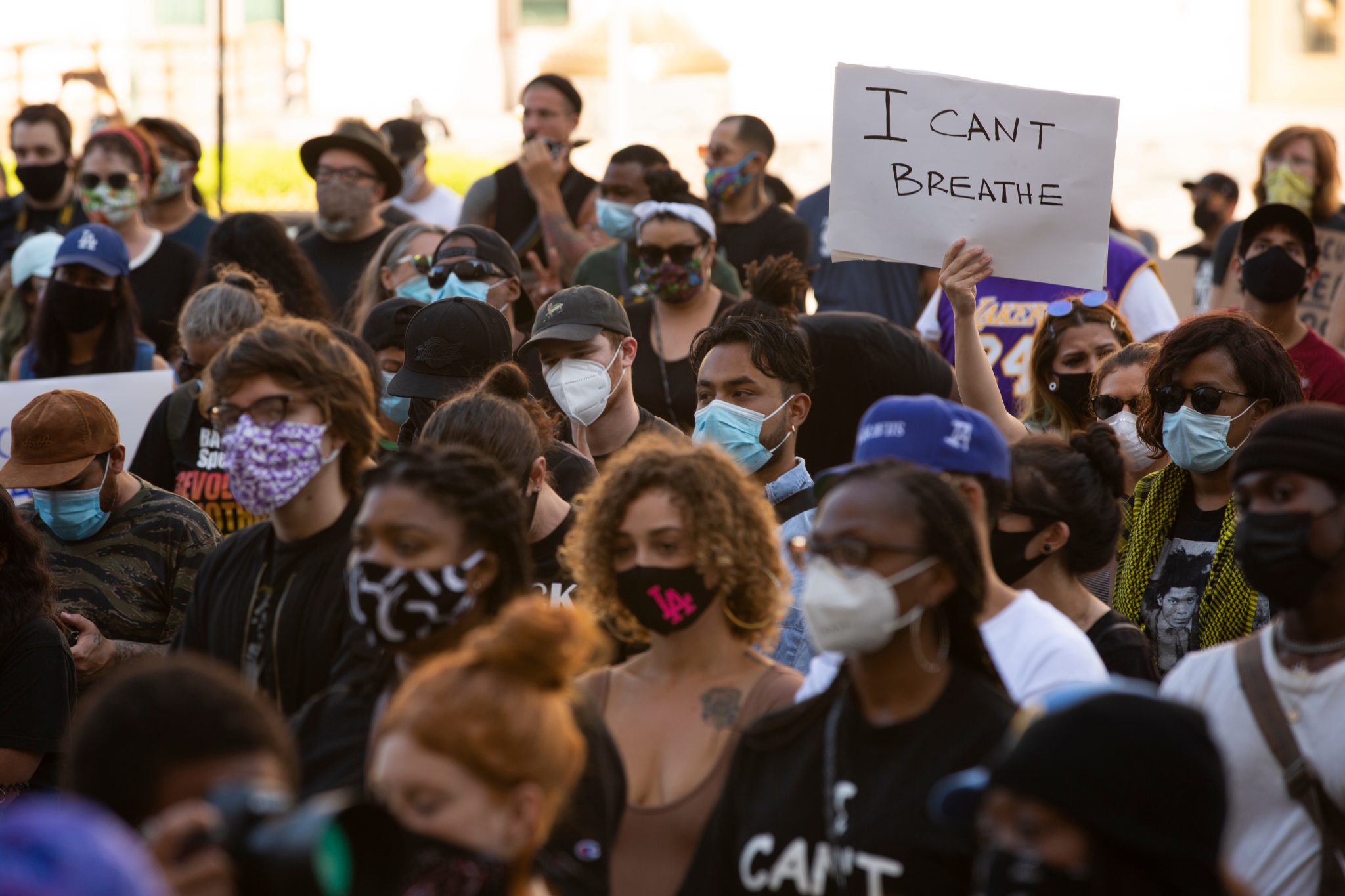 Most people protesting the death of George Floyd are following officials’ advice and wearing bandanas, cloth masks, or medical masks, but some are disregarding public officials’ advice and going mask-free.