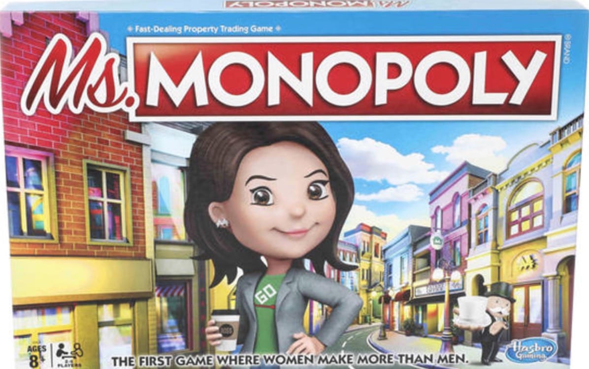 In Ms. Monopoly, female players start out with $1,900 while male players get $1,500. Females also receive $240 when passing Go while males receive the traditional $200. This special treatment for females is to address the disputed claim that women make less money than men for identical work. The game also changes the property-buying part of Monopoly into investing in innovations attributed to female inventors. In a lesser gesture, Hasbro has replaced the top-hat-wearing Rich Uncle Pennybags with a smartly turned-out female venture capitalist with one hand on her hip and another holding a coffee to go.