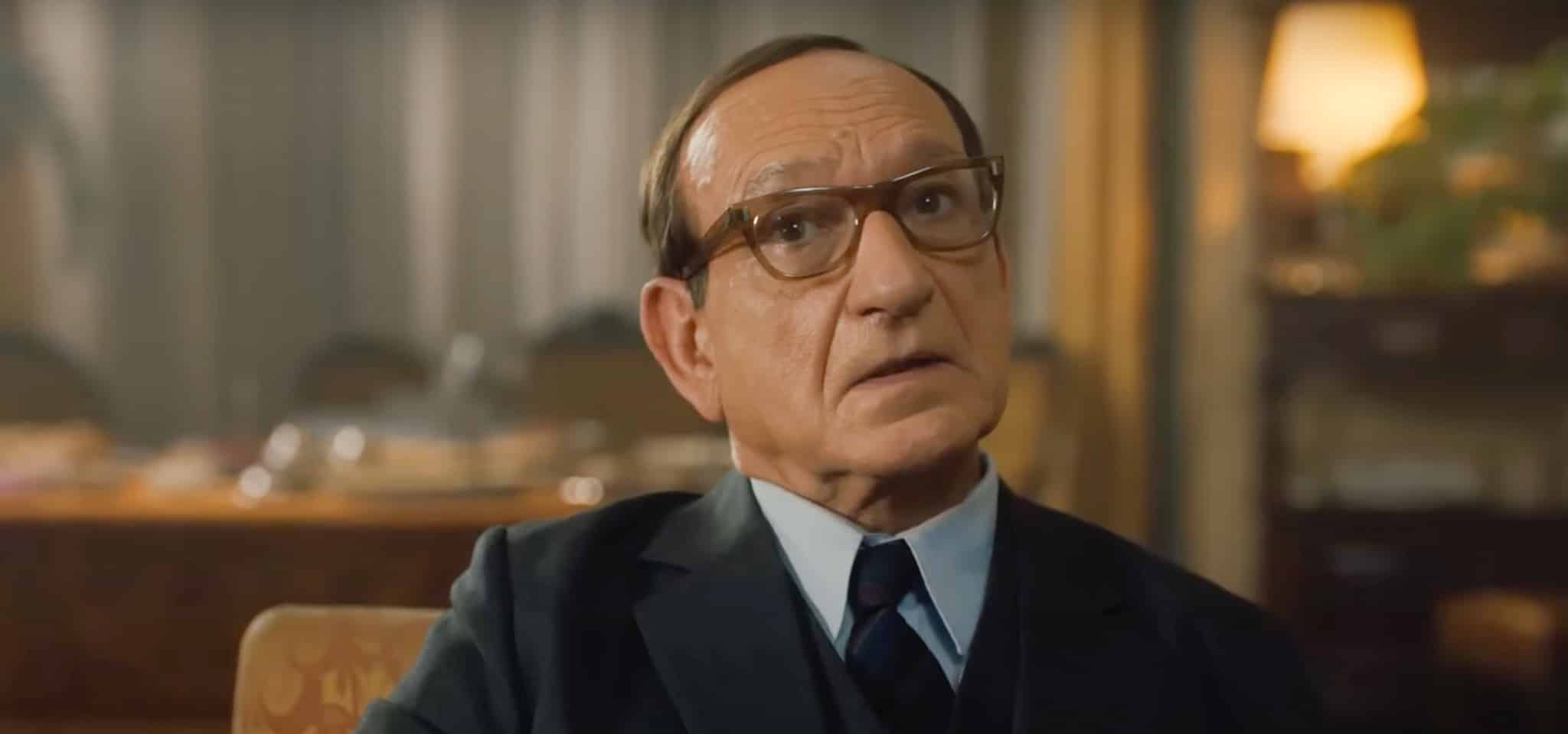 The most dramatic part of the movie covers the subsequent few days, during which the Israeli team keeps Eichmann under lock and key while trying to get his John Hancock. Of all the Israelis, Peter Malkin (Oscar Isaac) is the one who’s most palpably repulsed by Eichmann — but also, in a weird way, drawn to him. While Malkin is taking his turn feeding and shaving and guarding Eichmann, the old Nazi opens him up. Whom did he lose in the Holocaust? At first, Malkin resists intimate contact. Then he starts to break down, showing Eichmann a picture of his beloved sister, who died in the Holocaust with her infant son. Eichmann acts as if he’s sympathetic.