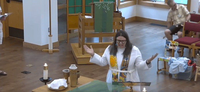 ELCA pastor leads congregation in professing “the Sparkle Creed,” June 27 (Woke Preacher Clips/Twitter)