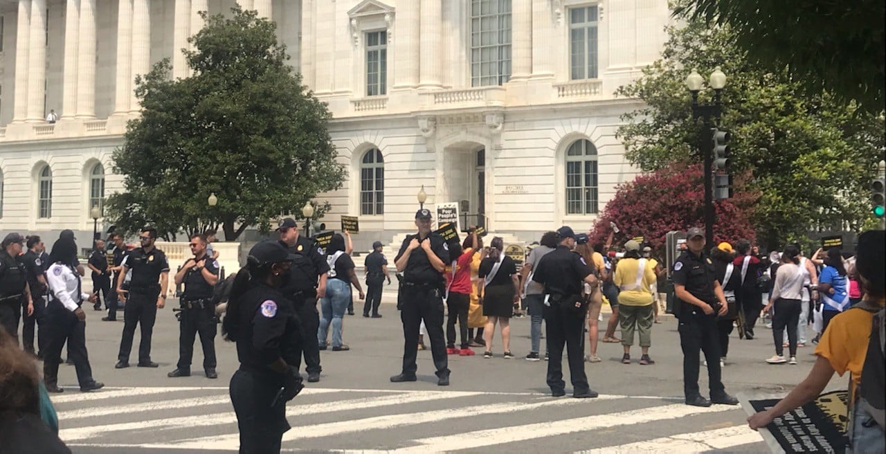 Protesters chant outside Senate office buildings on July 19, 2021 (Caelan Elliott) spectator.org