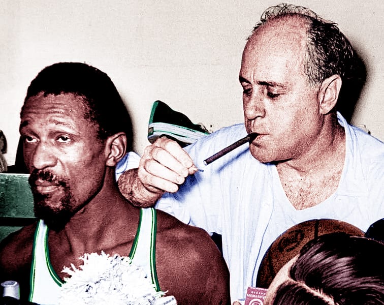 To get a sense of what they are suggesting, in vilifying the police department for reminding their neighbors (since Boston’s other public servants, such as the teachers, are failing in that area) that Red Auerbach contributed hugely, at a time when few contributed at all, to the integration of sports in America. As such he certainly played an important role in American history. Anyone who cares for so important a change in American society as the end of segregation by race ought to be thankful.