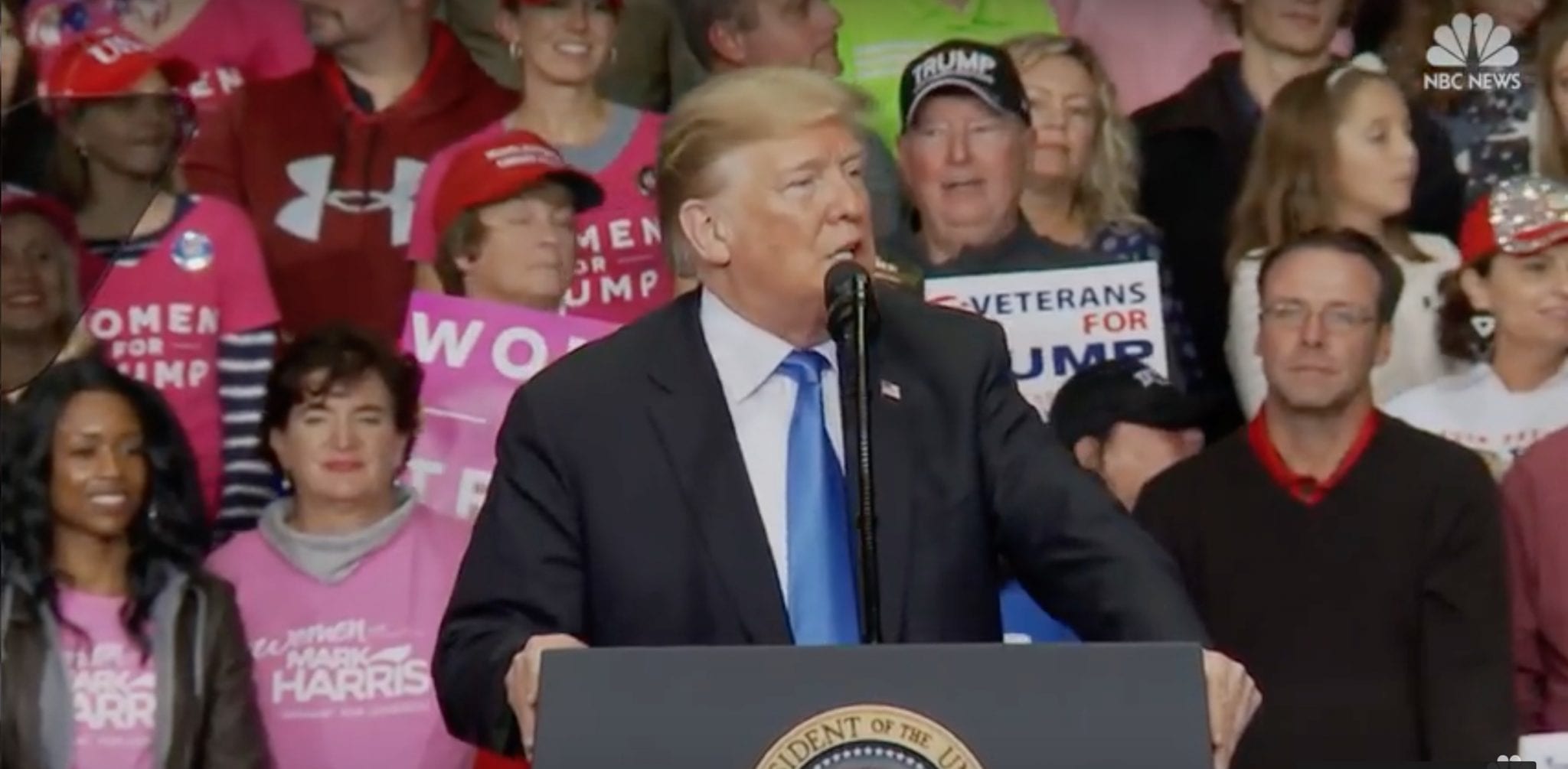 President Trump campaigning in North Carolina last October 26 (YouTube screenshot)