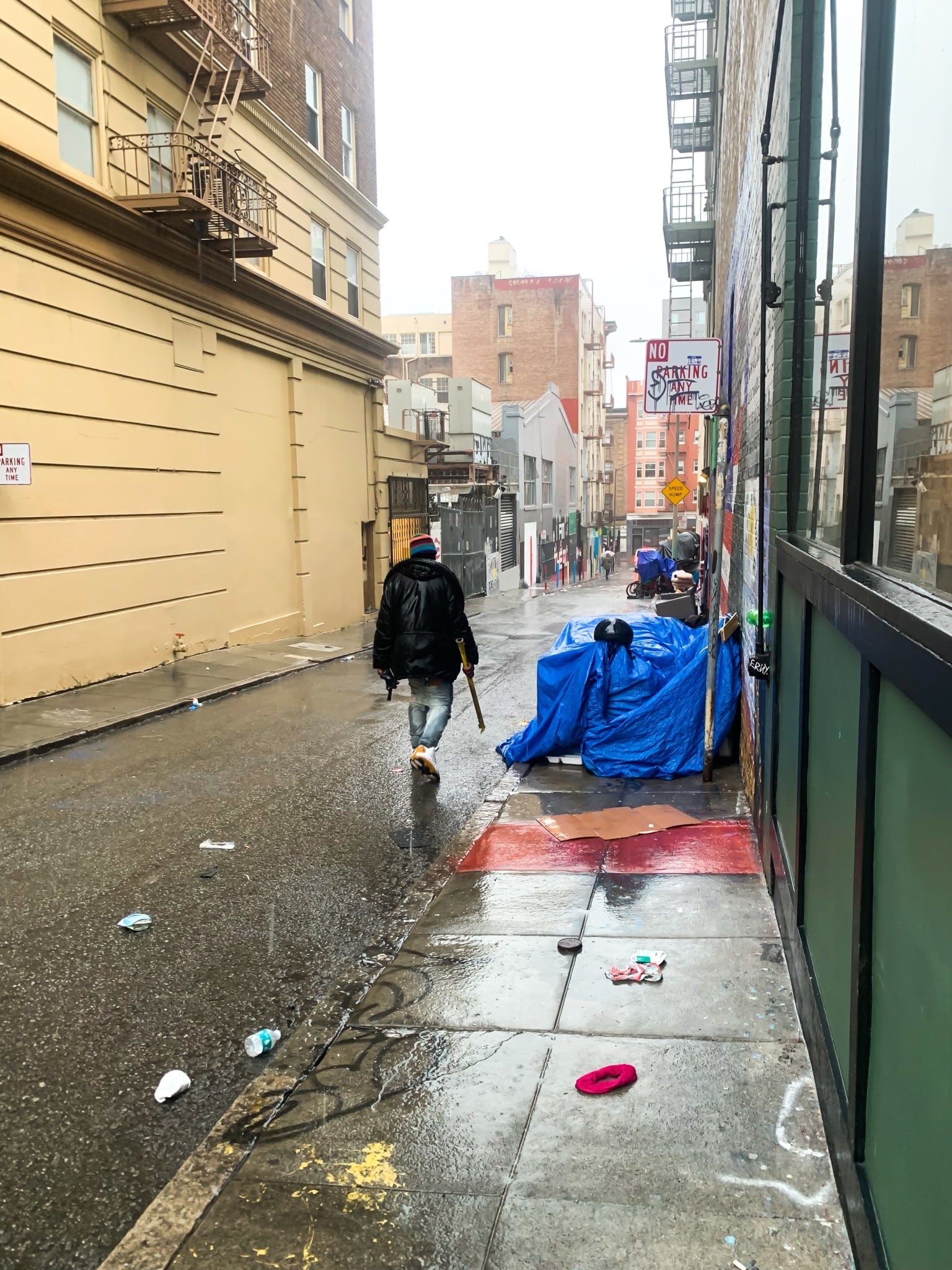 The homelessness problem is also connected to violence. I encountered a man with a tire around his neck who was swinging around a metal rod while walking the city’s streets.