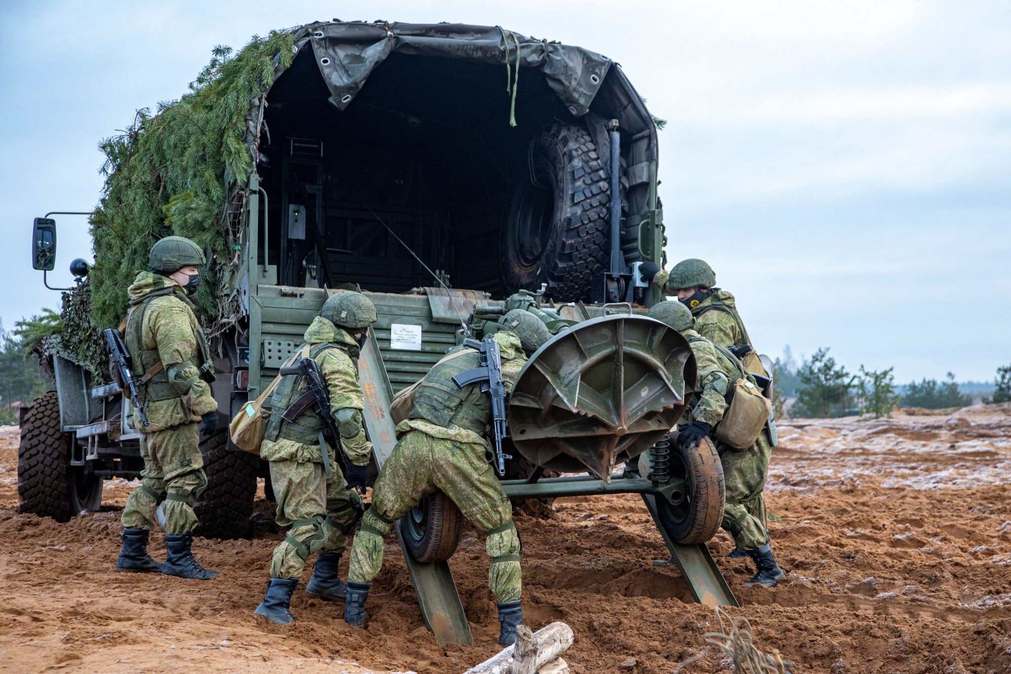 Russian troops in Luga, Russia, conduct artillery crew exercises, November 19, 2020 (Vectorkel/Shutterstock)