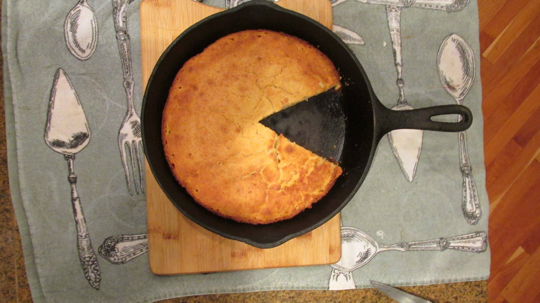 But while it is still “a thing” — here’s my fail-safe, works-every-time, skillet cornbread recipe: crispy outside, light and tender inside, coherent enough not to crumble when portioned, but definitely not cake-like. It’s serious cornbread.