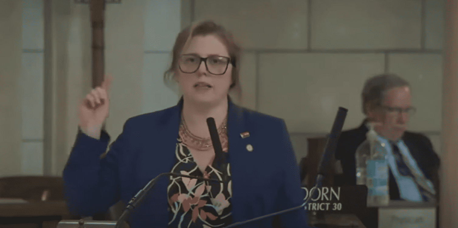 Nebraska state Sen. Machaela Cavanaugh during a debate on sex-change surgeries for minors (Courage Is A Habit/YouTube)