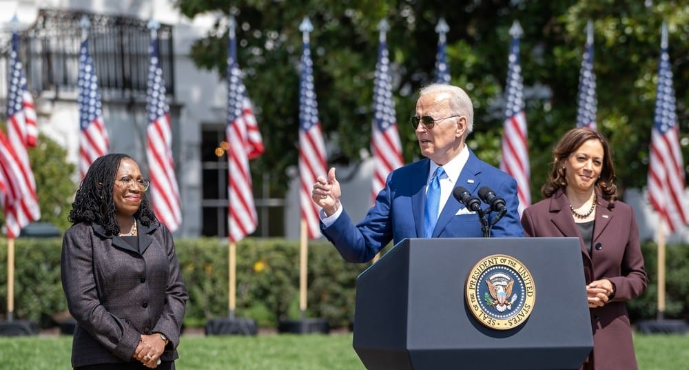 President Joe Biden speaks at an event to mark the confirmation of Judge Ketanji Brown Jackson to the Supreme Court, April 8, 2022 (White House Photography/Shutterstock)