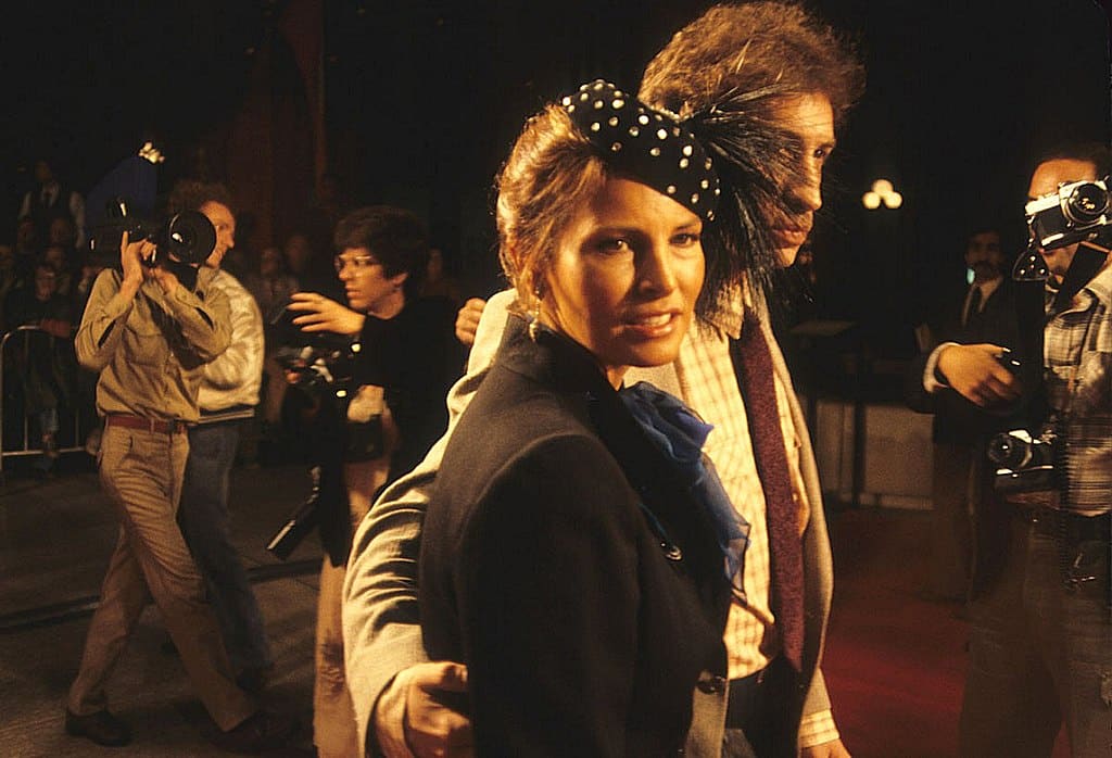 Raquel Welch and her husband arriving at a Hollywood premiere in 1979 (Photo by Alan Light/Wikimedia Commons)