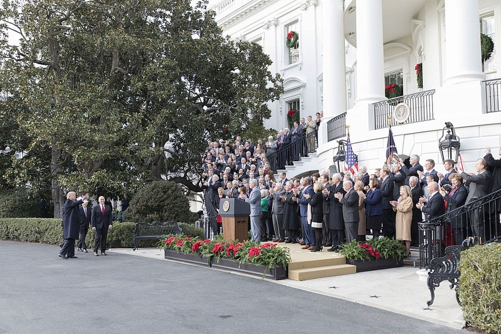 He led a successful change in the tax laws to favor U.S. business investment and job creation. Under President Trump’s leadership and with a supportive Republican Congress, our antiquated corporate tax laws were changed for the first time in decades to no longer encourage U.S. companies to invest and hire abroad. The United States went from the highest corporate tax rate in the developed world to among the lowest. And we allowed American companies to repatriate funds for hiring, investment, and shareholder distribution in America, in addition to funding the U.S. Treasury. Apple alone announced it will pay $38 billion in new taxes. More, some 300 companies announced bonuses, raises or retirement account increases as a direct result of the passage of the tax law.