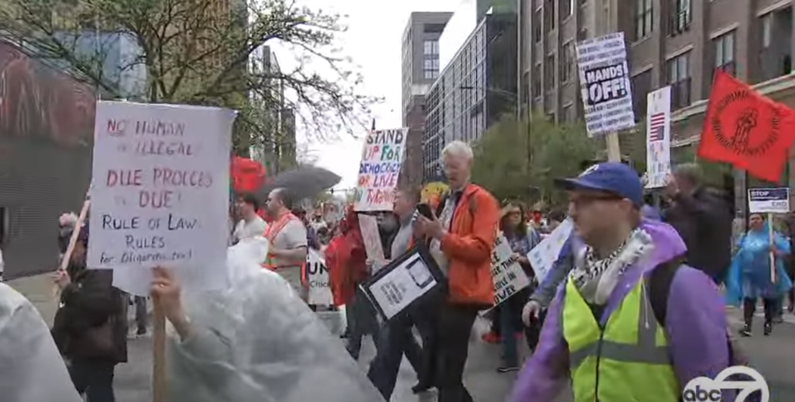 Anti-Trump protesters in Chicago's May Day protest rally on May 1, 2025 (ABC 7 Chicago/YouTube)