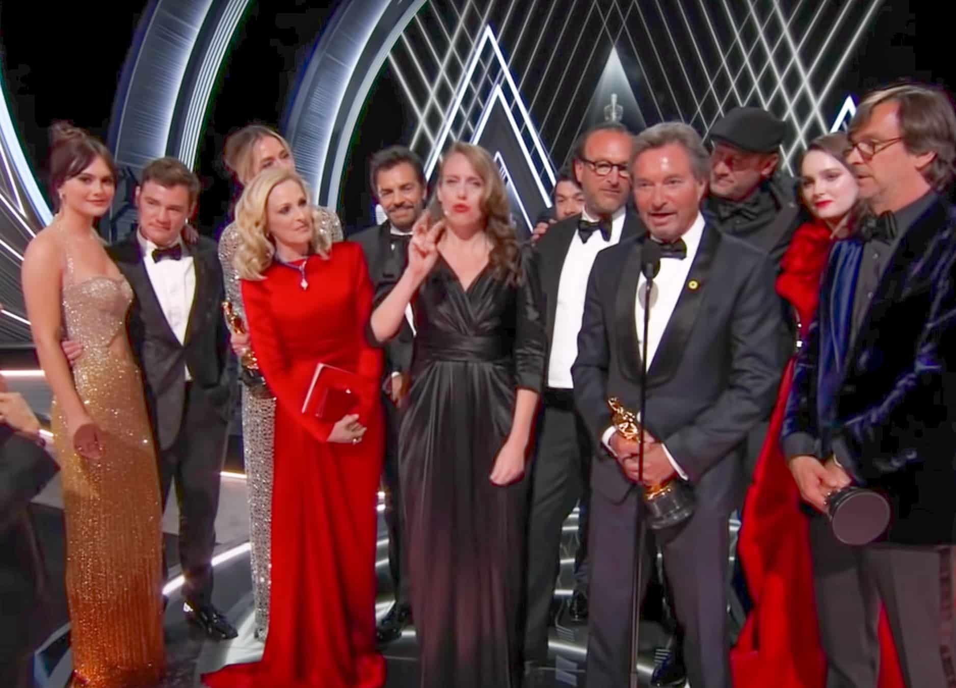 There were countless more dull, dismal bits, but amidst them were three moments of total class. One was the graceful and grateful Sian Heder accepting the best adapted screenplay award for CODA. Heder took her sign-language translator by the hand and led her to the stage. She next emotionally thanked, among many, her deaf parents (the subject of her film), “the entire CODA family,” and “My husband, David, I couldn’t do this without you. It’s so hard to be a director and a mom, and you make it possible.” It was lovely and touching.