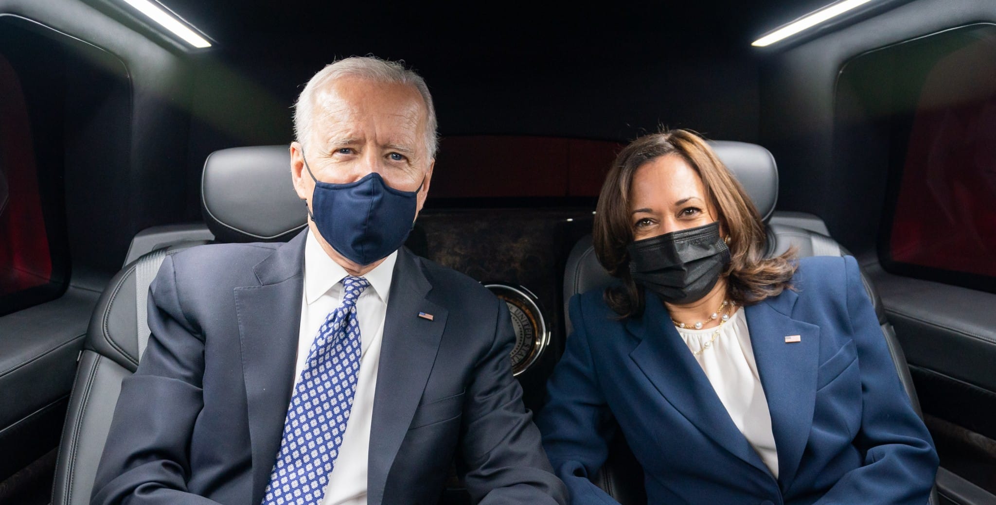 President Joe Biden and Vice President Kamala Harris travel in the presidential limousine on the way to the airport in Atlanta on March 19, 2021. (The White House/Wikimedia Commons)