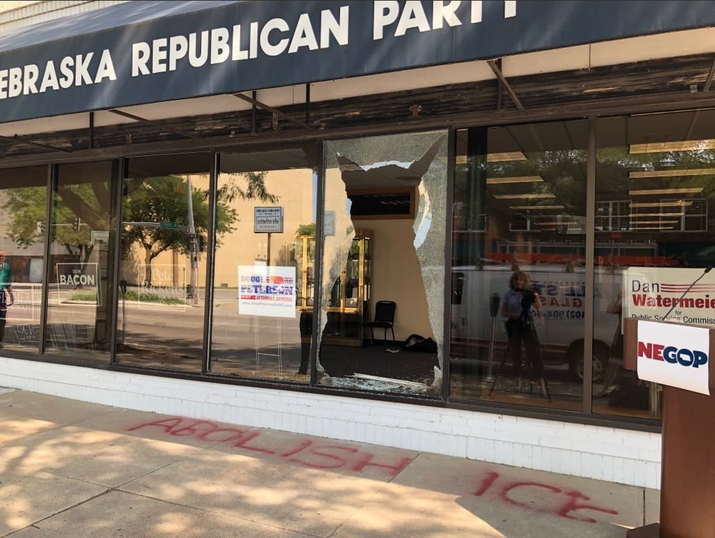 Nebraska GOP headquarters after it was vandalized on July 3. Photo: Mackenzie Huck – Twitter.